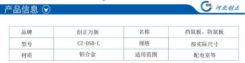 產(chǎn)品名稱:鋁合金材質(zhì)成套擋鼠板防鼠板